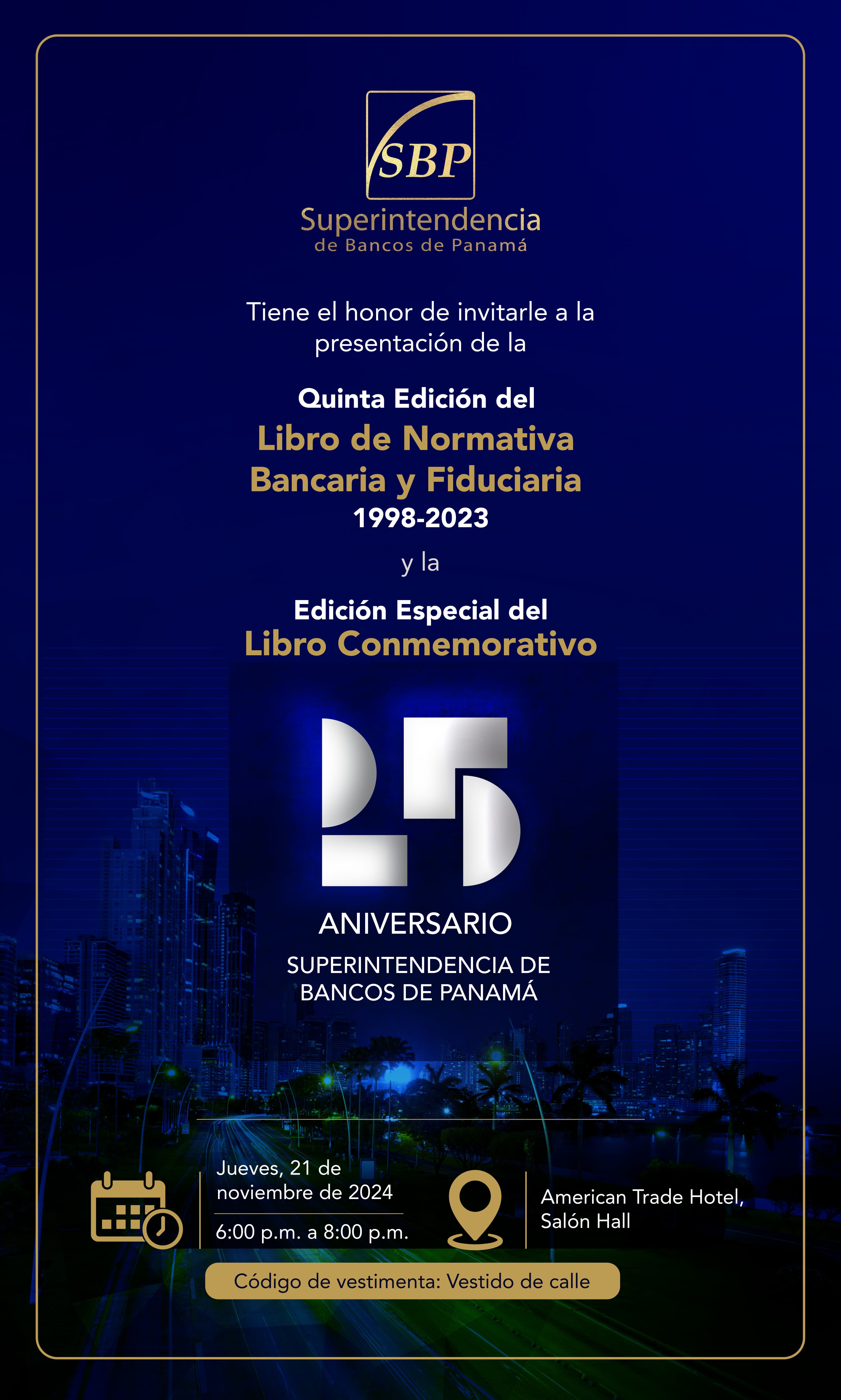 Attendance - Presentation of the Book of Banking Regulations 1998 - 2023, fifth edition, and the Special Edition of the Commemorative Book of the “25th Anniversary of the Superintendency of Banks of Panama”.