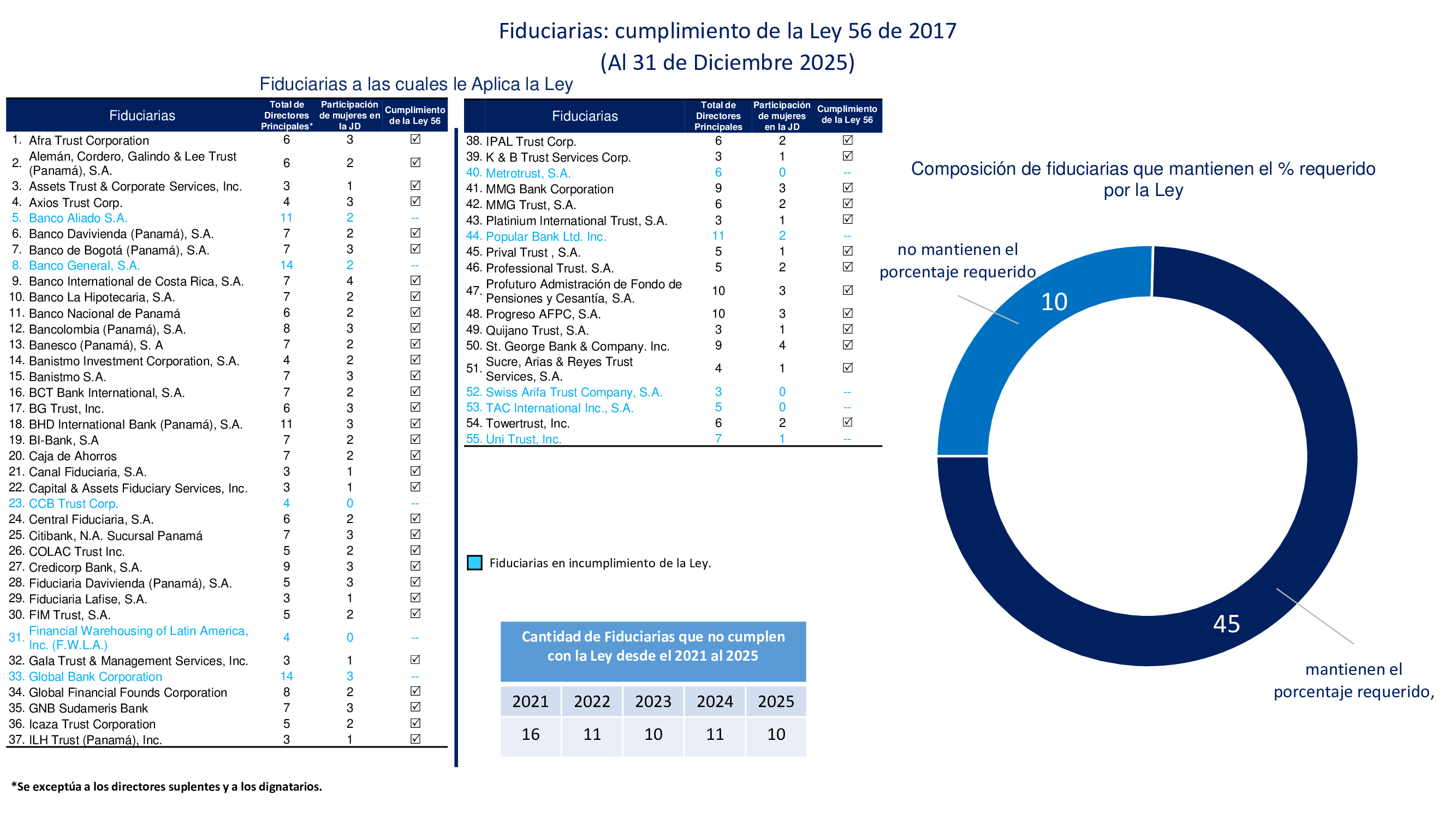 Juntas Directivas – Métricas 2021 – Cumplimiento de la Ley 56