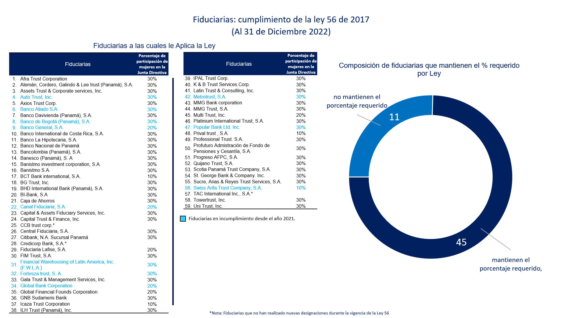 Juntas Directivas – Métricas 2022 – Cumplimiento de la Ley 56